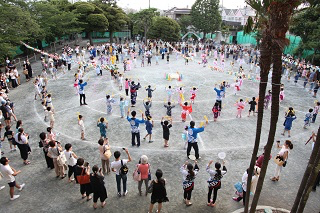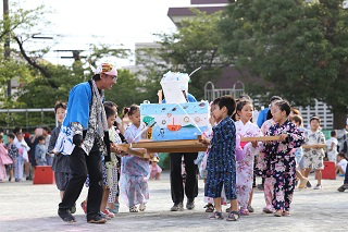 延期されていた夏祭りが行われました。1、2年生が自分たちで作ったおみこしを楽しくかつぎ、ペアになって楽しそうに踊っていました。