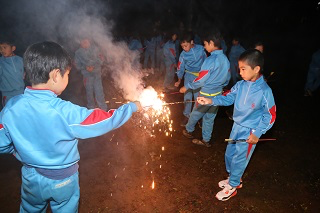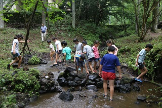浅間寮に着いたら川遊び、夜はキャンプファイヤーと花火を楽しみました。