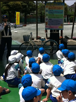 毎年、3年生に自転車講習会を行っています。今日も田園調布警察のご協力により、正しい自転車の乗り方を学びました。