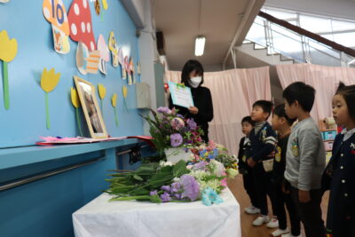また、重郎先生へお花を持ってきてくださった保護者の皆さま、子どもたちありがとうございました。