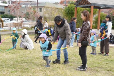 保護者のかたと一緒に楽しんだフラフープ遊び・鬼ごっこ・・・体をたくさん使って遊びました。