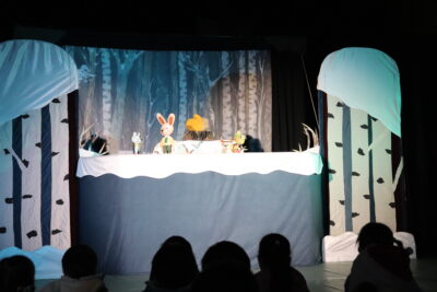 今年のプレゼントは・・・人形劇団「ポポロ」による、「てぶくろ」のおはなしでした。
