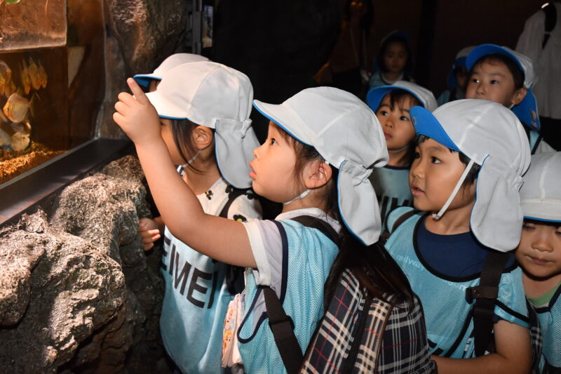 遠足当日は、魚やクラゲの水槽を見たり、大迫力のイルカショーに歓声をあげたり、思い出に残る一日となりました。