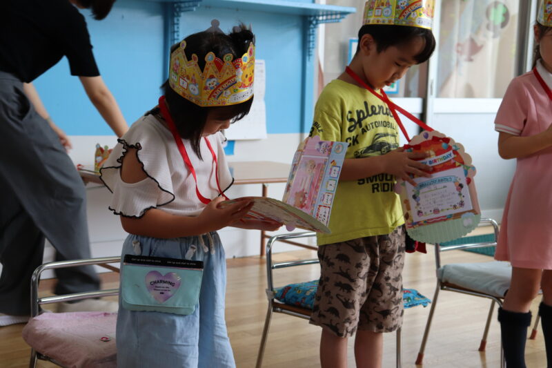誕生日のお友だちは、冠やカードのプレゼントを受け取り、笑顔が見られました。
