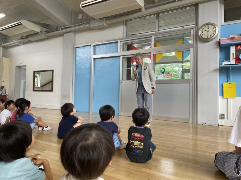 ホールに集まり、浅野理事長先生・佐々木園長先生からのお話を真剣に聞く子どもたちの姿が見られました。
