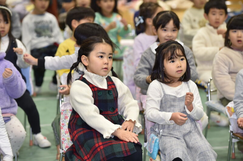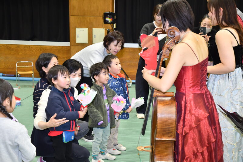 その後、ミュージックラトレによる音楽コンサートを鑑賞しました。ヴァイオリン・チェロ・ピアノによる演奏を聞いたり、スライドを使用した絵本の読み聞かせを見たり、楽しい時間を過ごしました。